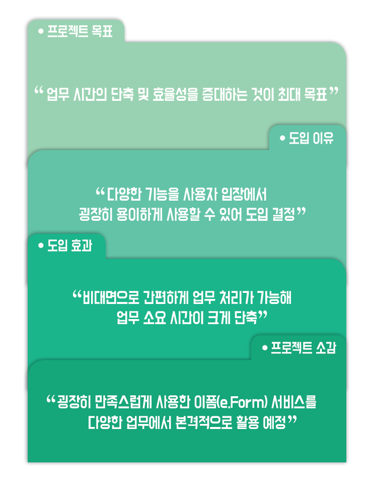 "굉장히 만족스럽게 사용한 이폼(e.Form) 서비스를 다양한 업무에서 본격적으로 활용 예정"