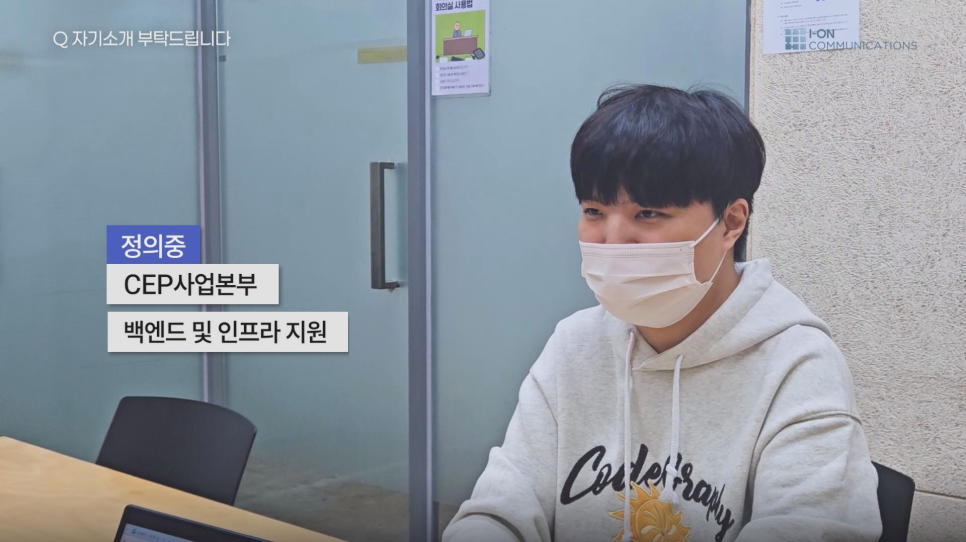 안녕하세요. CEP사업본부 에서 백엔드 및 인프라 지원 직무를 맡고 있는 정의중 이라고 합니다. 저는 Java·Spring 개발 직무로 시작하여, 현재는 ICE 의 API 개발 업무나 프로젝트 개발지원 외에도 다양 한 ICE 프로젝트의 인프라 구성 업무 지원을 맡고 있습니다.
