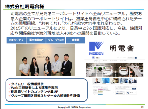 특히, 이번 NOREN Partner Network 모임에서는 2016년도 중간보고를 겸해 I-ON Content Server와 연동되는 다양한 기술 파트너사들의 기술 특히, 디지털 마케팅 솔루션 연동 부분에 초점을 맞춰 진행을 하였고, 최근 아시스토 포럼에서 사례 발표를 한 메이덴샤의 프로젝트를 바탕으로 다양한 연동 기술에 대해서 다른 영업/기술 파트너들과 그 정보를 공유하였습니다.