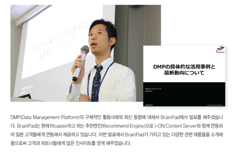 고객사 메이덴샤 프로젝트를 진행한 Atlas21 사의 타케타 상의 고객사례 발표를 통해서 해당 프로젝트를 다양한 솔루션을 I-ON Content Server와 연동해서 프로젝트를 성공리에 진행한 내용을 발표하였습니다. 각종 폼 서식과 관련 기능을 제공하는 SPIRAL, 추천엔진인 서브밋, IR관련 정보를 제공하는 프로넥서스 등 다양한 솔루션 등을 연동한 내용을 상세히 설명해주었습니다.