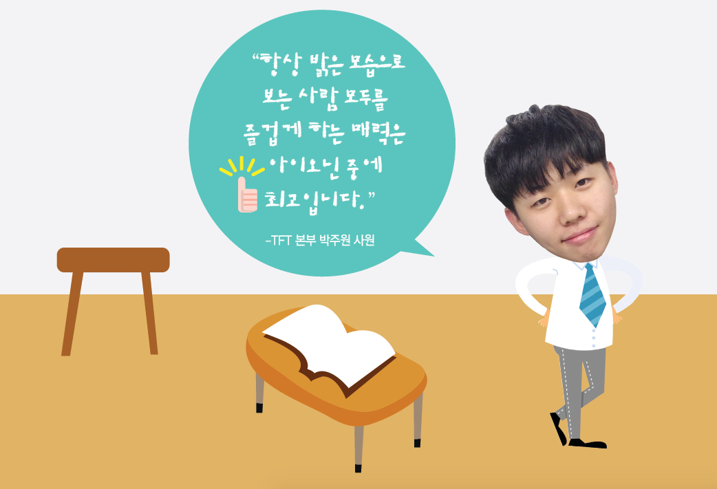 먼저 생각지도 못한 칭찬 릴레이의 다섯 번째 주인공으로 선정되어서 너무 기뻤는데, 추가로 ‘스마일맨’이라는 별명까지 얻게 되어서 매우 영광입니다. 이렇게 좋은 별명을 지어주신 박점배 팀장님께 감사의 마음을 전하고 싶습니다. 더불어 아이온의 ‘스마일맨’ 답게 주위 분들에게 웃음을 전해드릴 수 있도록 더욱 노력하겠습니다.