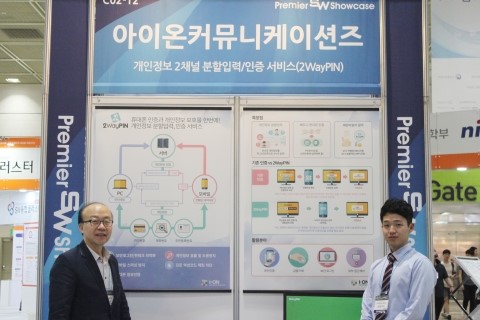 본 행사에서 아이온커뮤니케이션즈는 개인정보 2채널 분할입력/인증서비스 2WayPIN서비스를 본격적으로 선보였습니다. 많은 분들이 저희 부스에 오셔서 관심을 보여주셨는데요, 김관용 주임께서 직접 2WayPIN서비스를 시연하면서 설명해주셨습니다.