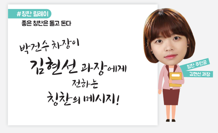 다음 칭찬릴레이 주인공으로 사업지원본부 김현선 과장님을 추천 드리고자 합니다.