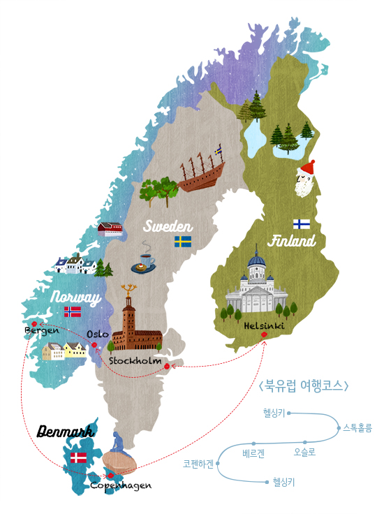 첫 방학으로 북유럽 여행을 계획하며 복지천국인 북유럽 국가들에 대해 많은 호기심을 품은 채 여행하게 되었는데요. 이번 여행을 통해 배우고 얻은 것들이 많았습니다. 자동차보다 더 많은 자전거, 오후 5시부터 대부분 칼같이 문을 닫는 상점들, 개인이 직접 참여하는 중고물품 시장, 노래를 흥얼거리고 스텝을 밟으며 일하는 가게 점원. 모두들 여유롭고 행복하게 사는 것 같아 저도 행복한 기분으로 여행할 수 있었습니다. 무엇보다 이번 여행이 정말 즐거울 수 있었던, 함께 해준 친구에게 정말 고맙다 말하고 싶습니다.