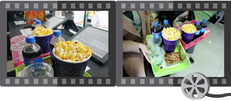 다들 한껏 부푼 마음으로 영화 감상에 빠질 수 없는 간식인 팝콘과 콜라를 한가득 품고 영화관으로 입장했습니다.