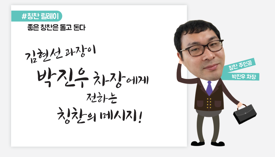 지난달 칭찬 주인공인 김현선 과장님께서 선정한 열 번째 칭찬 주인공은 과연 누구일까요~? 지금바로 만나보아요!