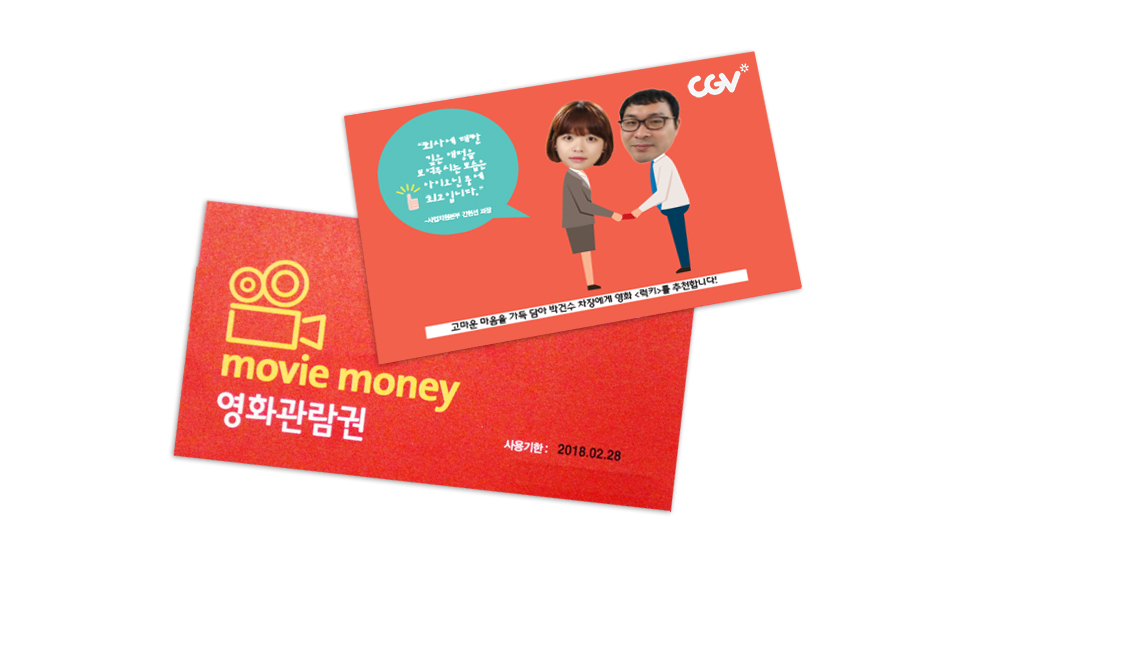 "고마운 마음을 가득 담아 박진우 차장님께 영화 <럭키>를 추천합니다!"