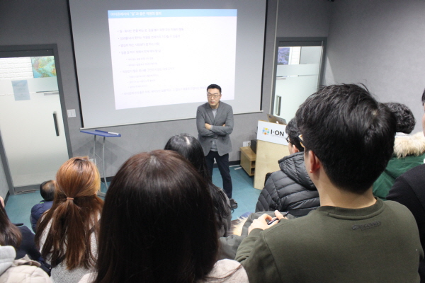 신입사원 자기소개 시간을 가진 후, 오재철 대표이사는 아이온커뮤니케이션즈에서의 일과 좋은 직원의 정의/ 아이온의 운영원칙/ 아이오닌들에게 요청하는 자세/ 일 잘하는 직원 등 몇 가지 항목에 대해 설명하면서 아이온커뮤니케이션즈의 식구가 된 신입사원들에게 격려의 말씀을 아끼지 않으셨습니다.