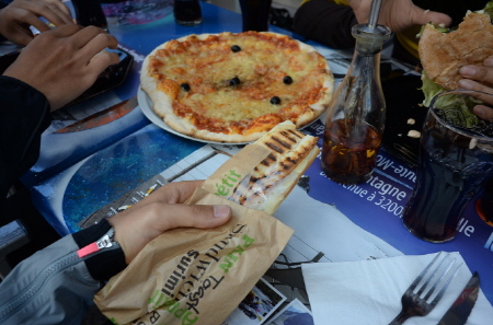 그리고 3일차에 깐느의 해변에 레스토랑에서 먹은 코스 요리도 기억에 남습니다. 그 외에 Nice에서 Venasque로 이동하던 산속 음식점에서 먹었던 바게트 샌드위치, San Remo해변가에서 먹은 피자가 기억에 남습니다. 특히나 빵이나 치즈는 어딜 가나 정말 맛있었습니다. 이런 음식들도 맛있었지만 촌놈이라서 그런지 4일차땐 시원한 국물이 먹고 싶어 니스역 근처에서 베트남 쌀국수를 먹은 것도 기억에 남습니다.