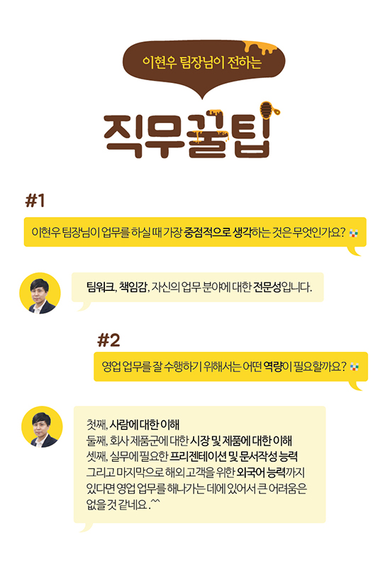 지금부터 이현우 팀장님과의 인터뷰를 통해 '영업' 직무에 대한 이야기를 들어볼까요~?