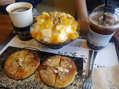 설심당 팥빙수로 유명한 제주 디저트 카페인데요. 저희가 먹은 망고치즈빙수도 정말 밋있더라구요. 식사 후에 입이 심심할때 가 보시면 좋을 것 같아요^^ |