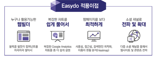 과제의 산출물인 '이지두(Easydo)'는 누구나 쉽게 웹사이트를 제작하고 분석 할 수 있는 서비스로, 기존 시장의 웹 빌더의 단점을 보완한 제품입니다.