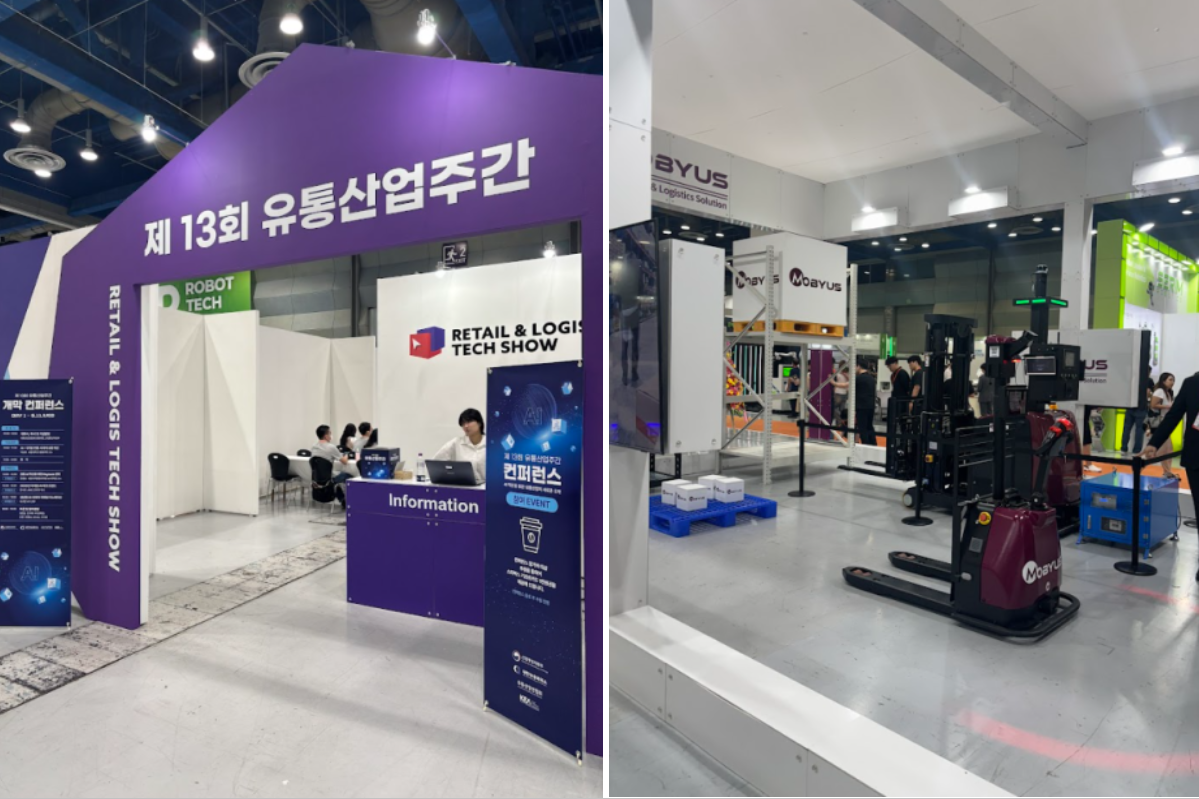 먼저, 행사장 입구와 가까운 B홀에서는로봇테크와 디지털 유통·물류 기술을 집중적으로 다루고 있었습니다!
