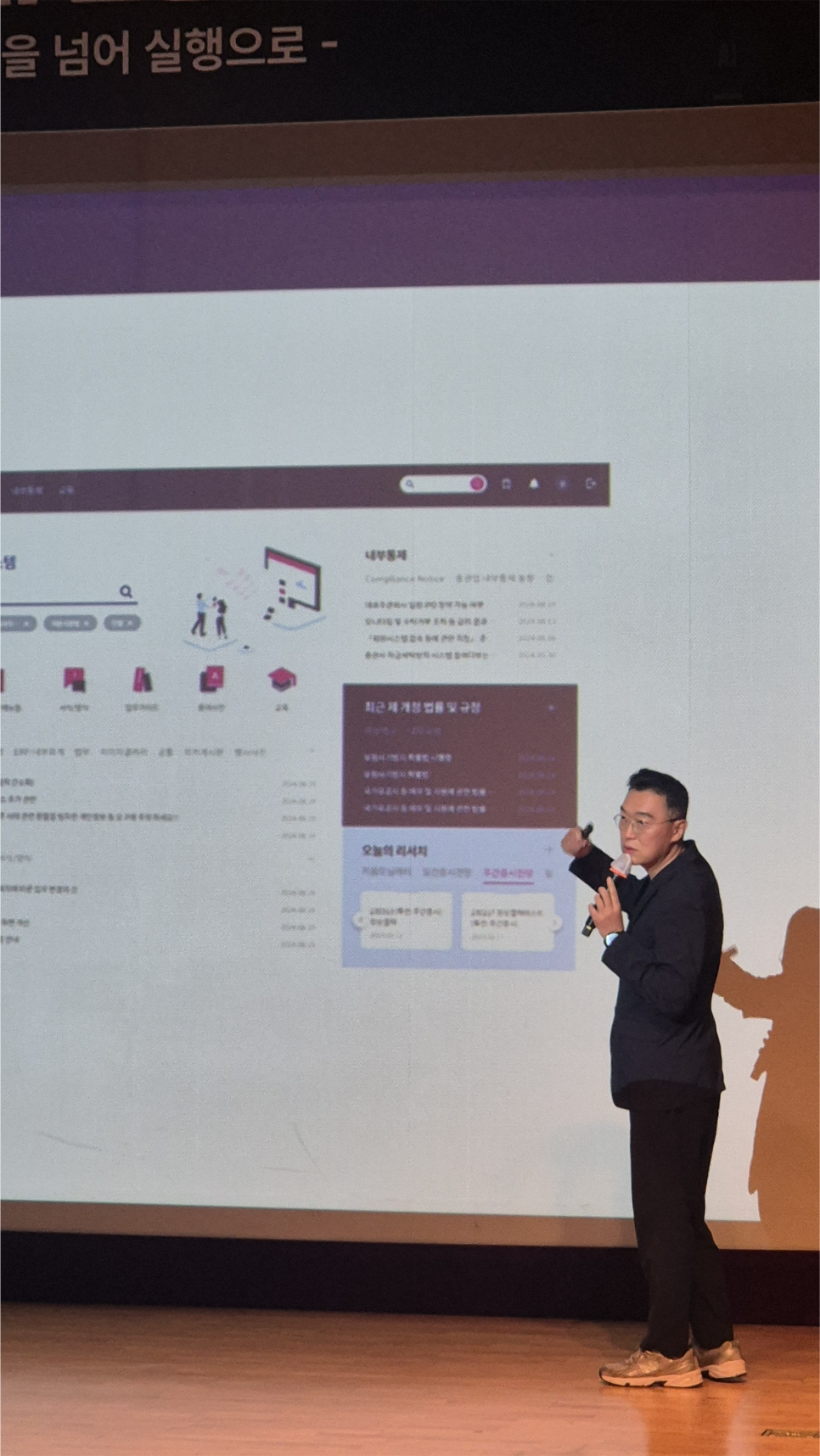 'AI 에이전트, 어떻게 비즈니스 혁신을 이끄는가?'에 대한 주제로 강연을 진행했습니다.