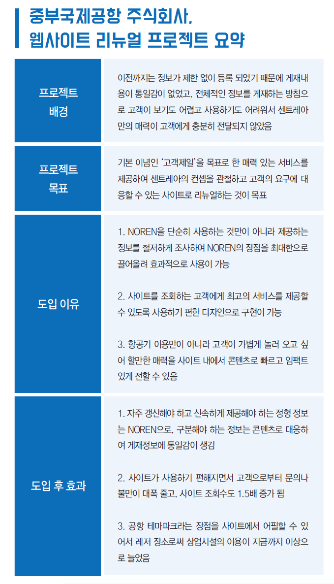 [NOREN CASE STUDY] ㈜중부국제공항(센트레아), 근본적인 사이트 리뉴얼 실현