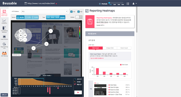 히트맵은 웹사이트를 이용하는 고객의 마우스포인터를 기준으로 웹페이지의 어느 부분을 겨누거나, 클릭하거나, 머물렀는지 등을 분석하는 기술로 고객의 행동 분석을 통해서 좀더 유익한 콘텐츠 및 관심도 높은 영역에 대한 식별을 가능하게 한다.