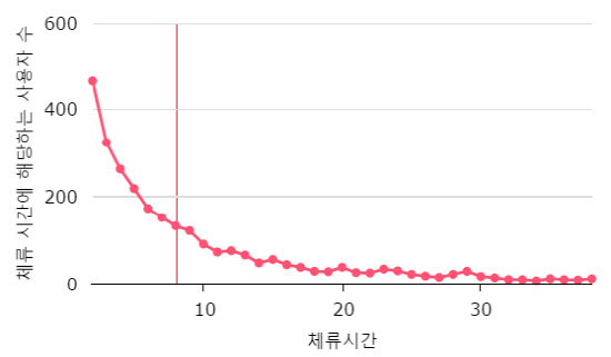 [사용자의 체류시간 데이터를 통해서 전체 사용자들이 체류하는 시간의 전반적인 현황을 알 수있다.]