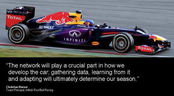 [그림] 경주자동차의 정비 여부는 더 이상 정비사가 결정하지 않는다. 데이터 분석가는 실시간으로 이탈리아에서 데이터를 보고, 빅데이터를 바탕으로 정비 여부를 결정한다. (출처 : Cisco)