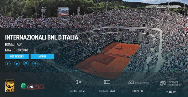 [그림] 총 10명의 심판이 배치되던 기존의 테니스 경기와 다르게 이태리 ATP 대회에는 주심 1명과 호크아이(카메라기반) 6대가 심판을 맡는다. (이미지출처 : ATP world tour 홈페이지)