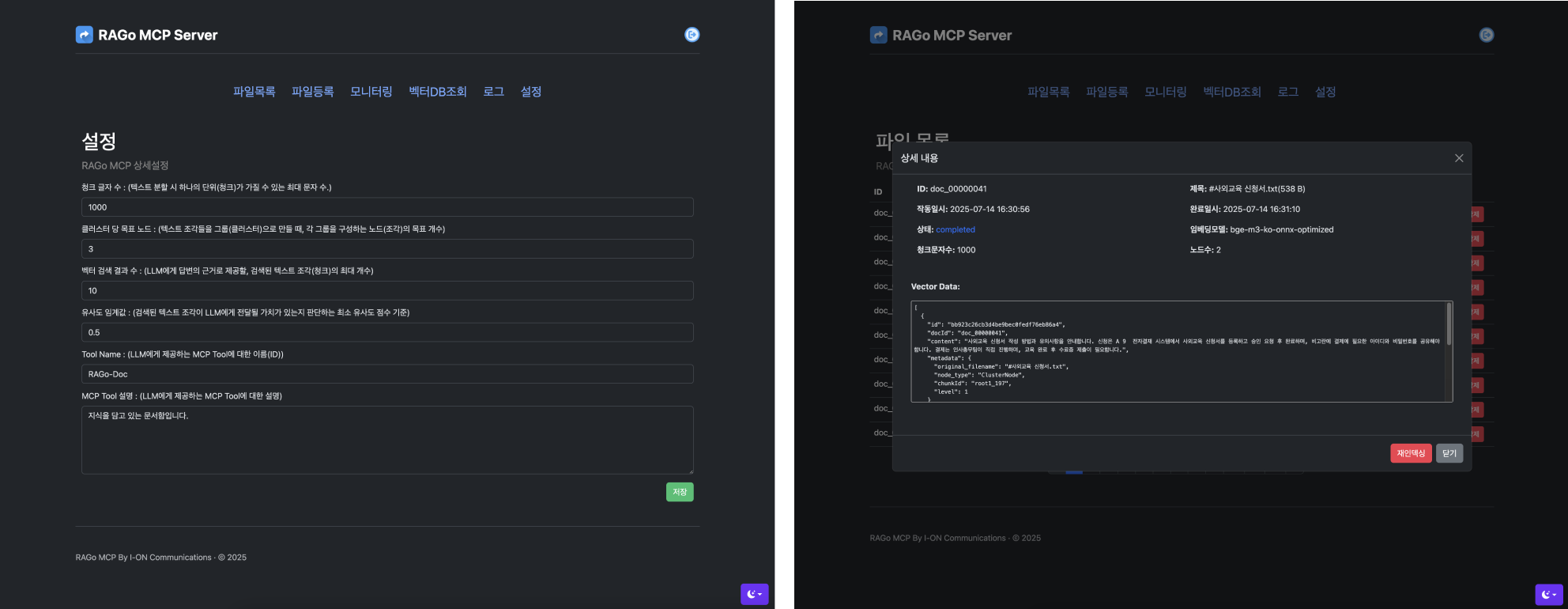 RAGo는 기업 내부 데이터를 기반으로 질문에 적절한 정보를 검색하고, 그 정보를 바탕으로 답변을 생성하는 RAG 엔진입니다. 긴 문서도 맥락을 파악해 핵심 내용을 추려 응답할 수 있으며, 부서나 주제별로 챗봇을 따로 운영할 수 있도록 구성할 수 있습니다.