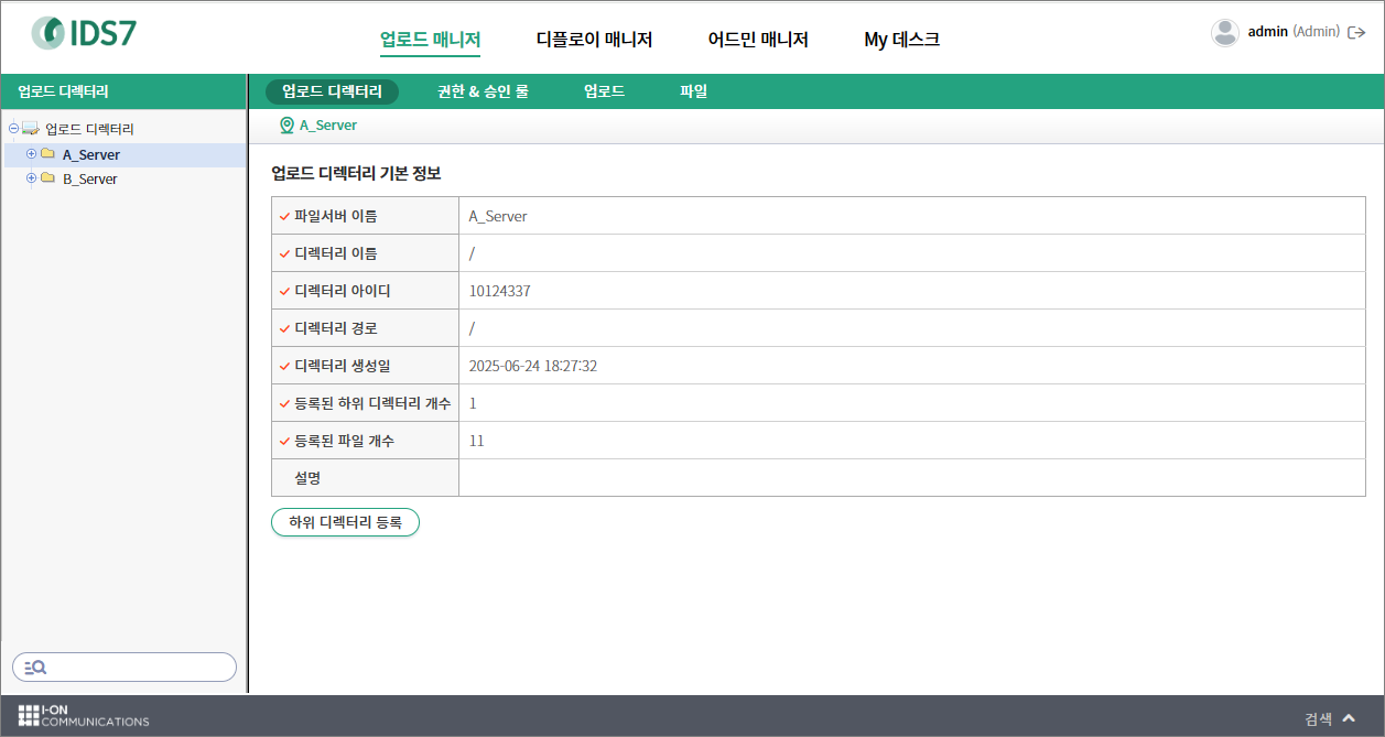 업로드 디렉토리에서는 파일 서버상의 파일을 관리하기 위한 전반적인 기능을 제공합니다.