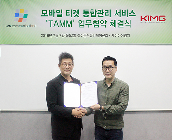 아이온-케이아이엠지, 모바일 티켓 통합관리 서비스 'TAMM'의 성공적인 마케팅 활동을 위한 MOU 체결