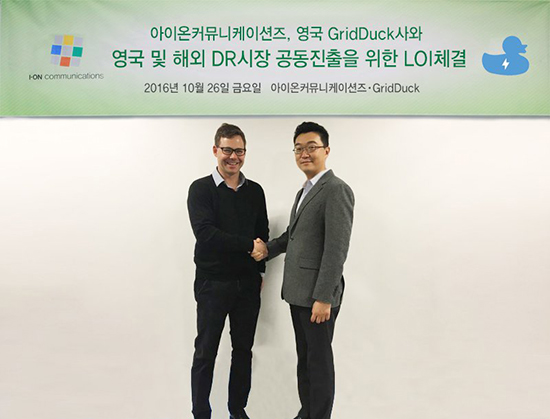 대한민국 대표 비정형 데이터 관리 전문기업, 아이온커뮤니케이션즈(대표 오재철, www.i-on.net)는 영국의 GridDuck사와 수요관리(Demand Response)시장 공동 진출을위한 협력의향서(LOI)를 체결했다고 밝혔다.